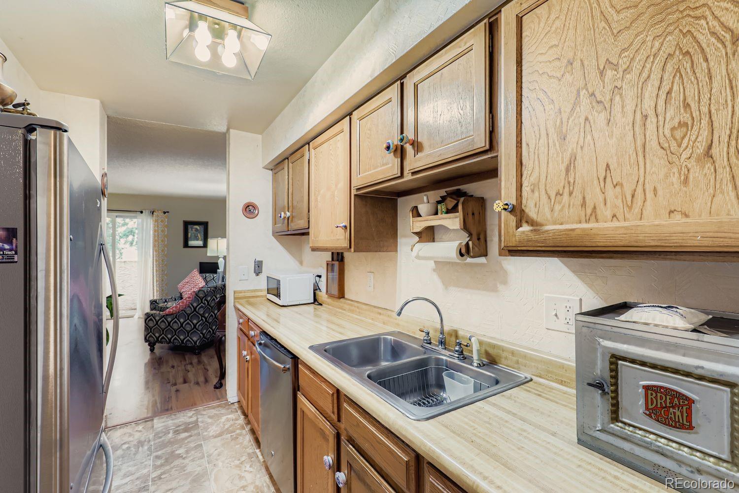 Backing to a lush courtyard with a treed canopy, this fantastically affordable Fountain Court Townhome is a must see! An ideal central location, just moments to parks, public transit, and the Highline Canal Trail, make this property practical for the homeowner or investor. The main floor has a separate, quaint dining area, a connected kitchen with newer appliances, and a living room that opens to the patio and courtyard. Be sure to note the retro cool and functional fireplace, sure to charm and warm chilly days. Upstairs you'll find a large primary bedroom with ample closet space, a secondary bedroom, and full Jack-and-Jill bathroom. Parking is a breeze with an assigned Carport located just steps from the unit and the community fees cover water, sewer, common and exterior building maintenance. Property is priced for being sold AS-IS. This home qualifies for the Community Reinvestment Act providing 1.75% of the loan amount as a credit towards buyer's closing costs, pre-paids and discount points! Other lenders have CRA programs. Be sure to see this wonderful, right-priced home today!