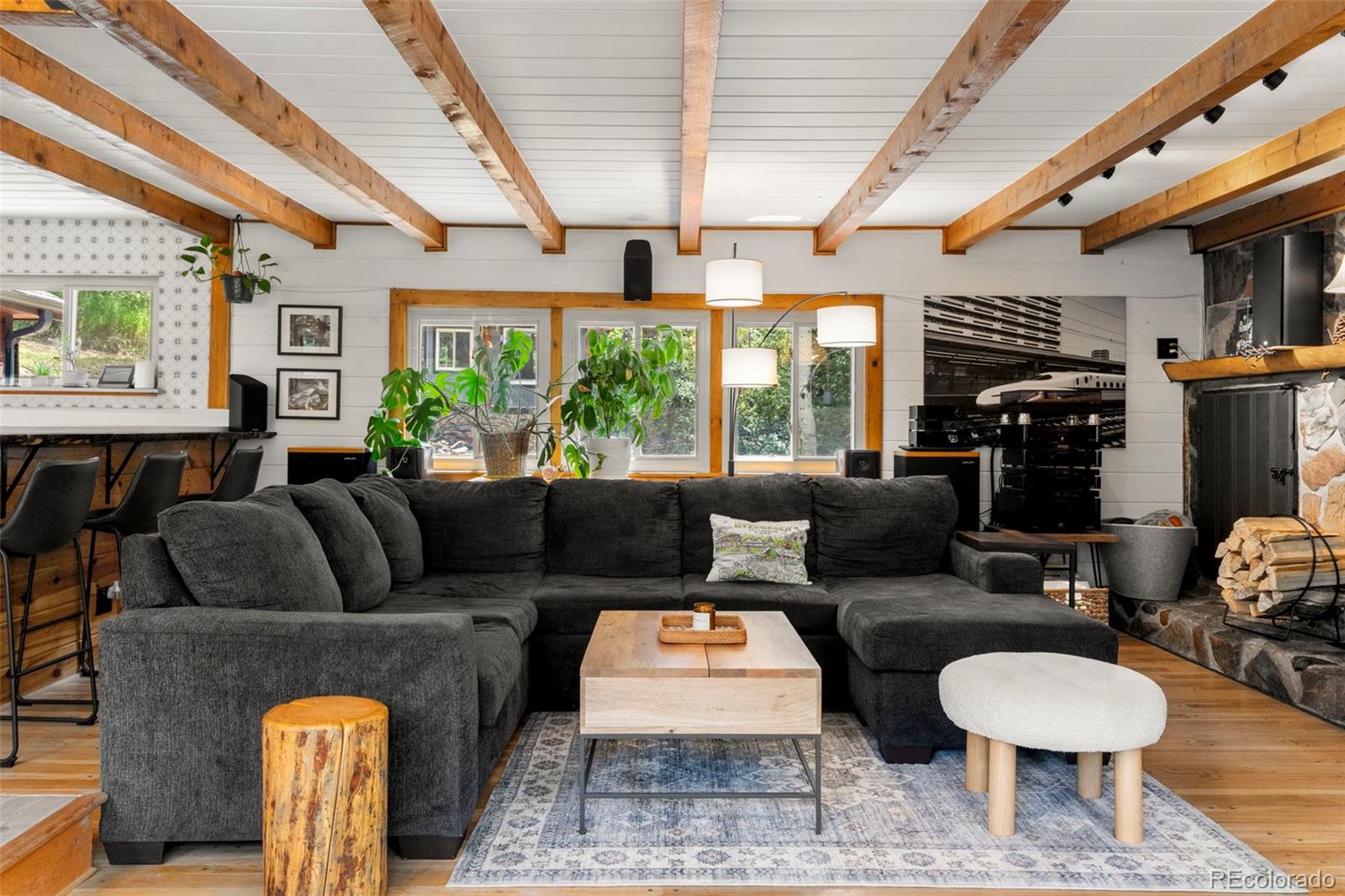 Discover a rare Colorado foothills retreat offering privacy, character, and modern upgrades on eight wooded acres with a seasonal creek, just 20 minutes from Denver metro amenities. This exceptional property combines natural beauty with thoughtful updates, creating the ideal balance of secluded mountain living and convenient city access. Surrounded by mature trees and abundant wildlife, the home is filled with natural light and features a distinctive treehouse-inspired aesthetic that enhances its true Colorado mountain vibe. Two fireplaces provide warmth and charm throughout the year, while expansive windows frame peaceful forest views from nearly every room. The serene outdoor living space includes a spacious deck, patio, and tranquil water feature--perfect for entertaining or relaxing in your own private woodland setting. A detached small cabin adds exceptional flexibility and value, offering the perfect space for a home office, art or music studio, guest retreat, children's playroom, or potential rental opportunity. Inside the main residence, updates are evident throughout, including newer KitchenAid appliances and a beautifully renovated, spa-inspired primary bathroom. Mechanical and infrastructure improvements include generator pre-wiring, updated chimney caps, enhanced sump pit and pump systems, new gas lines, and a professionally installed exterior lighting and camera system, ensuring comfort and peace of mind. Ideally located for commuters and professionals, the property offers easy access to major employment centers including Lockheed Martin facilities, as well as recreational and lifestyle destinations such as Ravenna Golf Club, Deer Creek Canyon Park, and South Valley Park. With convenient connections to C-470 and the 285 corridor and nearby National Forest access for hiking, biking, and outdoor adventure.