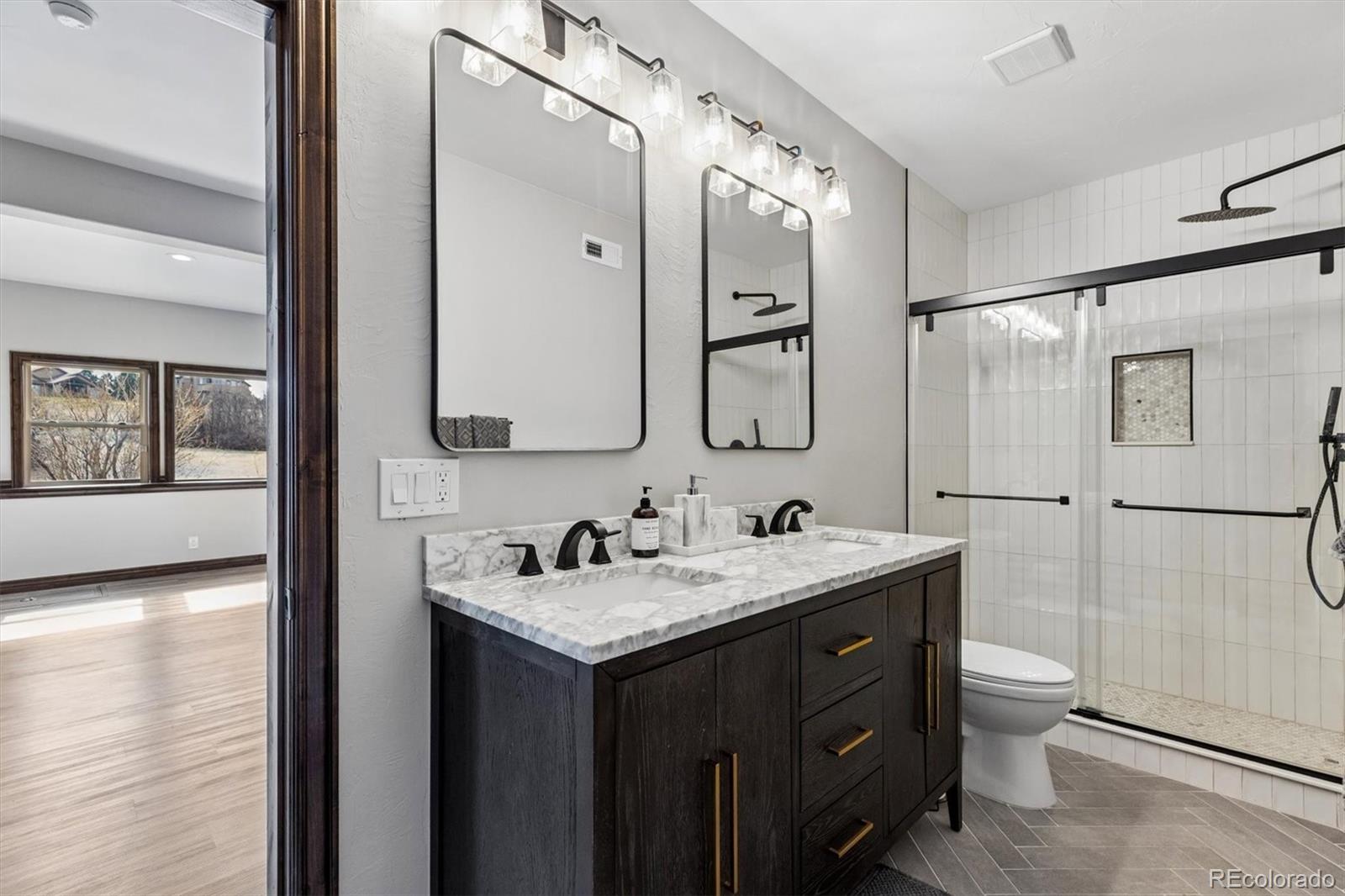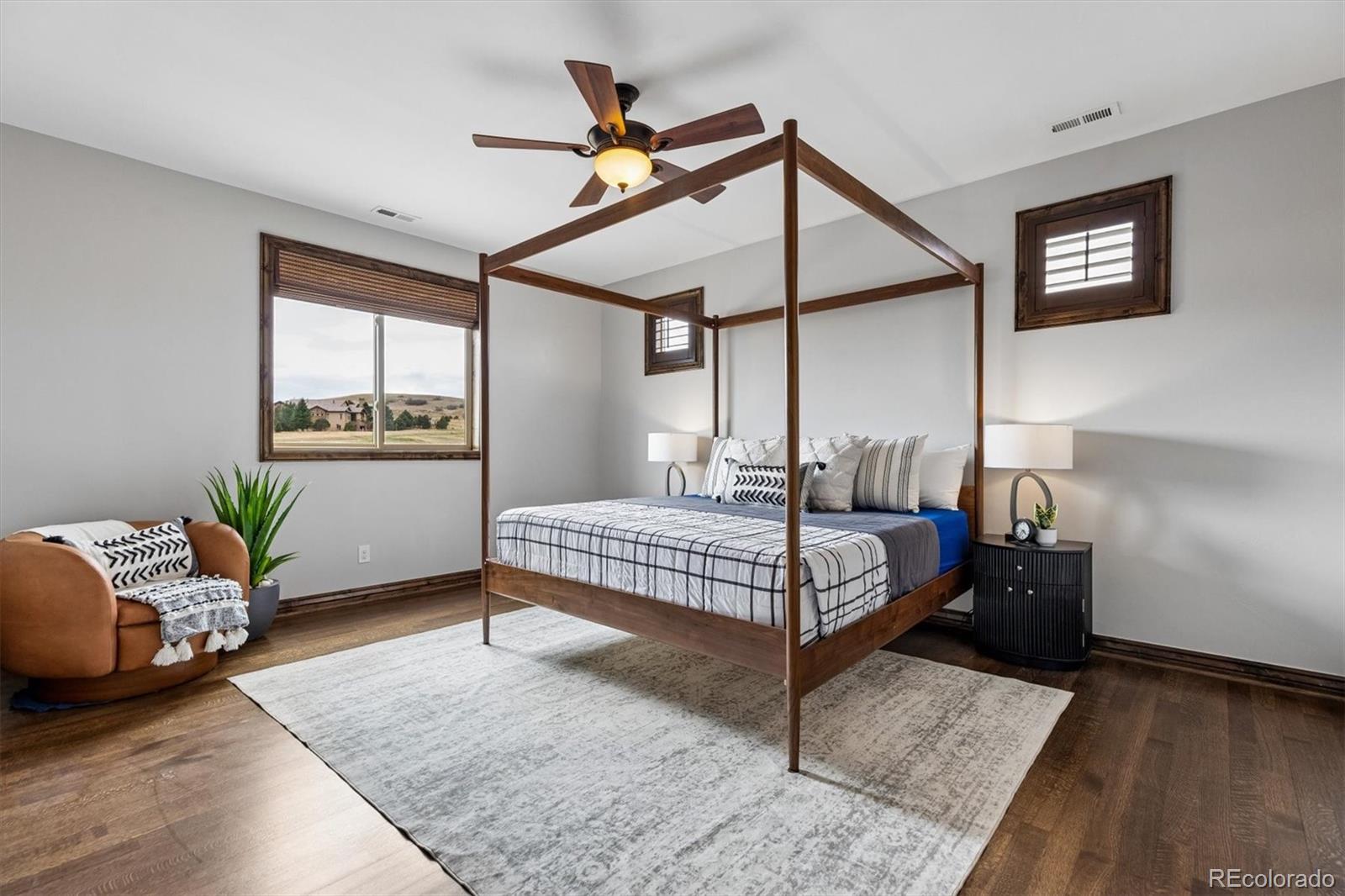Nestled on a private 1-acre cul-de-sac Pradera site with expansive golf views, this exceptional custom home offers the perfect blend of luxury, comfort, and Colorado beauty. Built in 2013, and recently remodeled, this stunning residence features over 5,400 square feet of thoughtfully designed living space, showcasing high-end finishes, and seamless indoor-outdoor living.