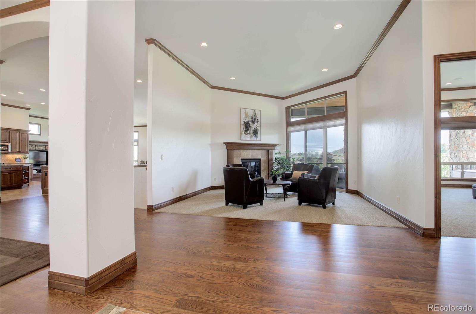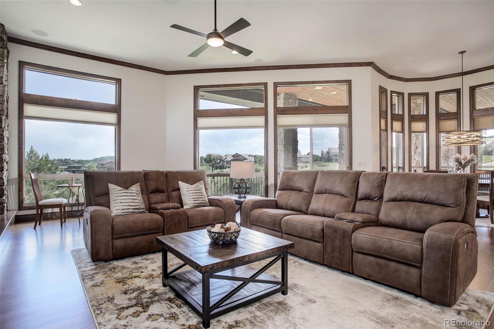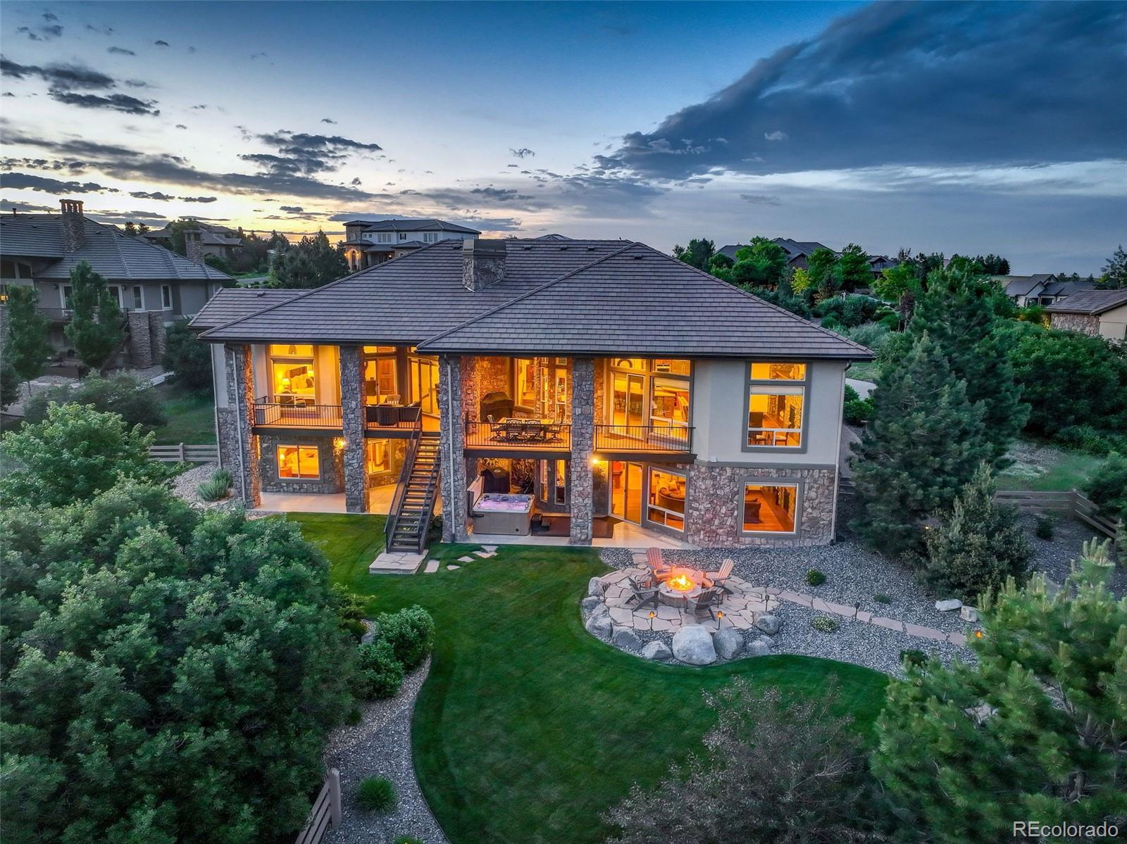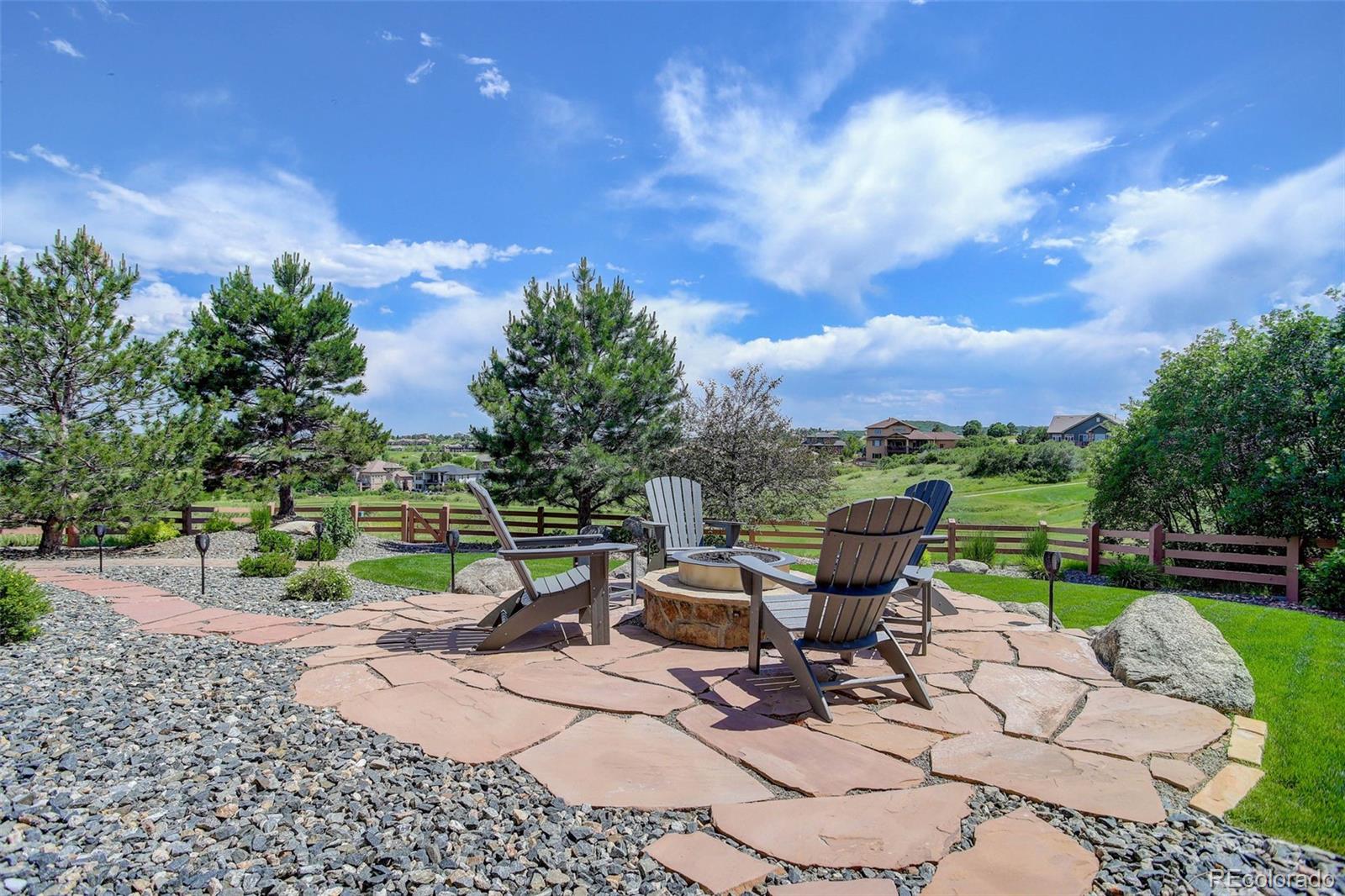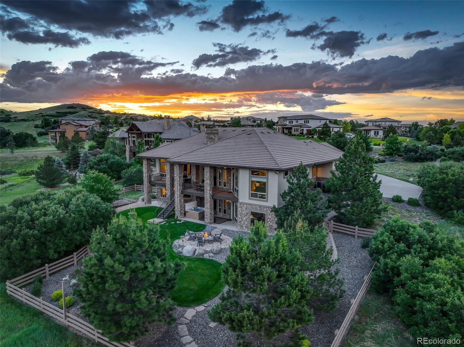 A stunning Pradera residence through and through! Dramatic home design gives openness, high ceilings, and large picture windows to enjoy the expansive views of the golf course, the neighborhood, and the foothills to the southwest. Amazing kitchen/great room, the heart of the home, provides stone and wood detailing, high-end appliances, and access to the rear covered deck - ideal for enjoying the Colorado evenings! Main floor primary bedroom also gives access to the deck, a gorgeous bath with beautiful finishes and a free-standing soaking tub, and an unbelievable walk-in closet. Friends and family will love the lower level with its spacious rec room complete with walk behind wet bar and space for games, a theater room, and three guest bedrooms with en suite baths. Pristine landscaping, including a fire pit, garden area, and a fully fenced in backyard, an equally sensational 4-car garage, and add in the neighborhood's first class amenities, and this just might be the perfect home for the most discerning buyer!