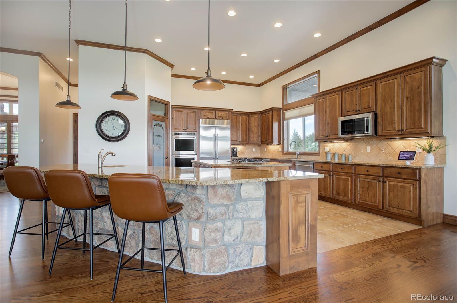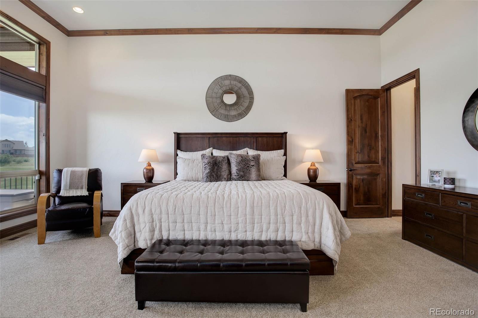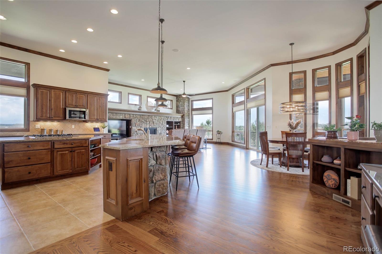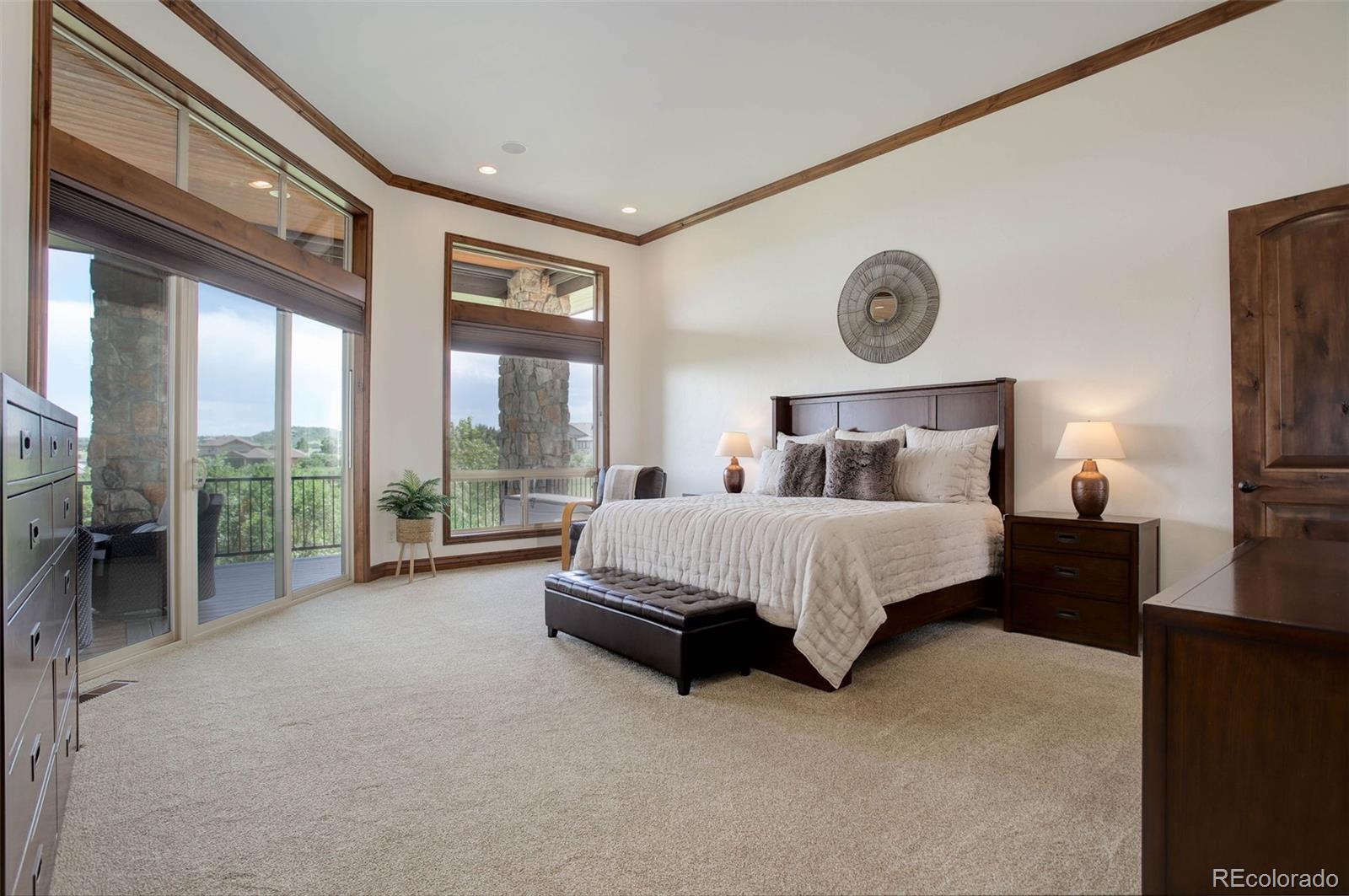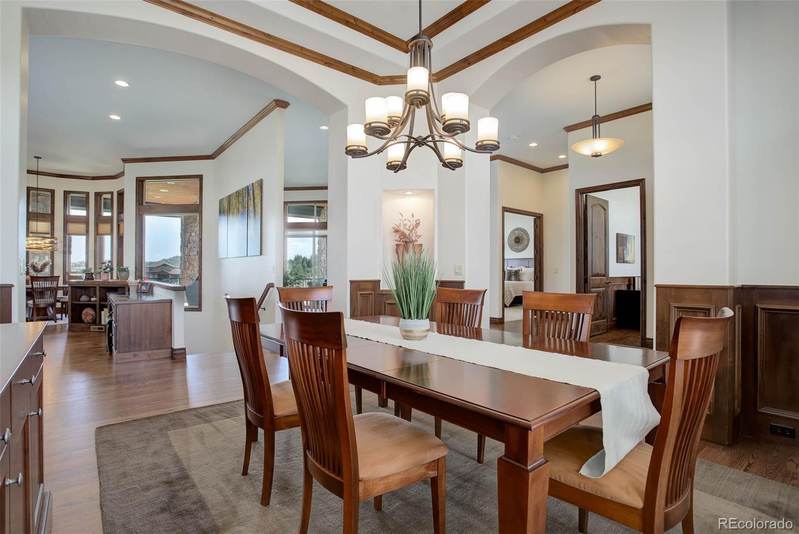 A stunning Pradera residence through and through! Dramatic home design gives openness, high ceilings, and large picture windows to enjoy the expansive views of the golf course, the neighborhood, and the foothills to the southwest. Amazing kitchen/great room, the heart of the home, provides stone and wood detailing, high-end appliances, and access to the rear covered deck - ideal for enjoying the Colorado evenings! Main floor primary bedroom also gives access to the deck, a gorgeous bath with beautiful finishes and a free-standing soaking tub, and an unbelievable walk-in closet. Friends and family will love the lower level with its spacious rec room complete with walk behind wet bar and space for games, a theater room, and three guest bedrooms with en suite baths. Pristine landscaping, including a fire pit, garden area, and a fully fenced in backyard, an equally sensational 4-car garage, and add in the neighborhood's first class amenities, and this just might be the perfect home for the most discerning buyer!