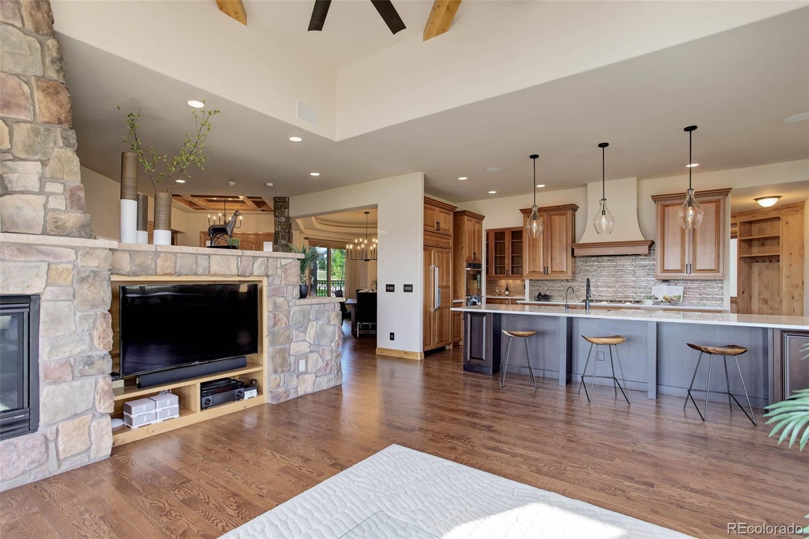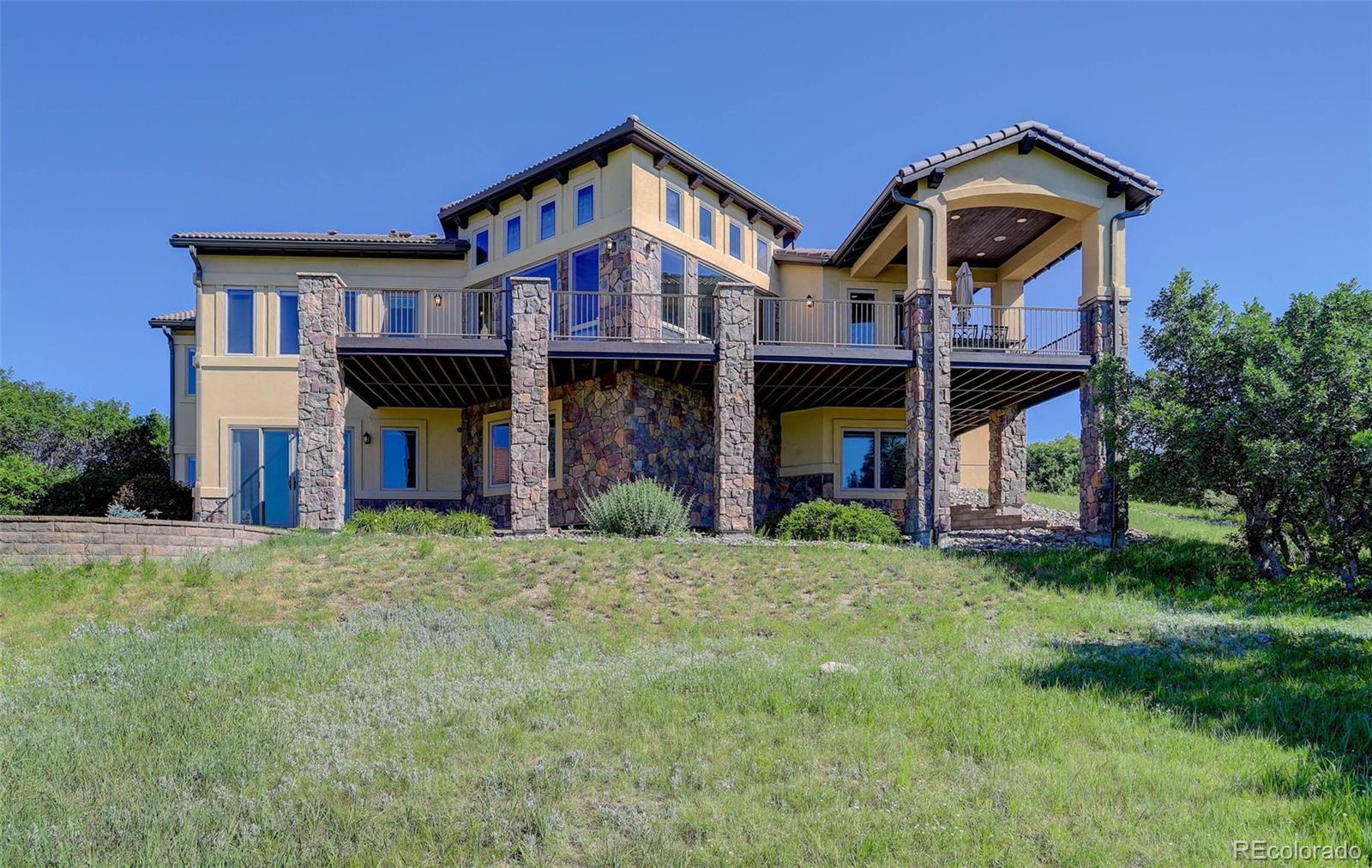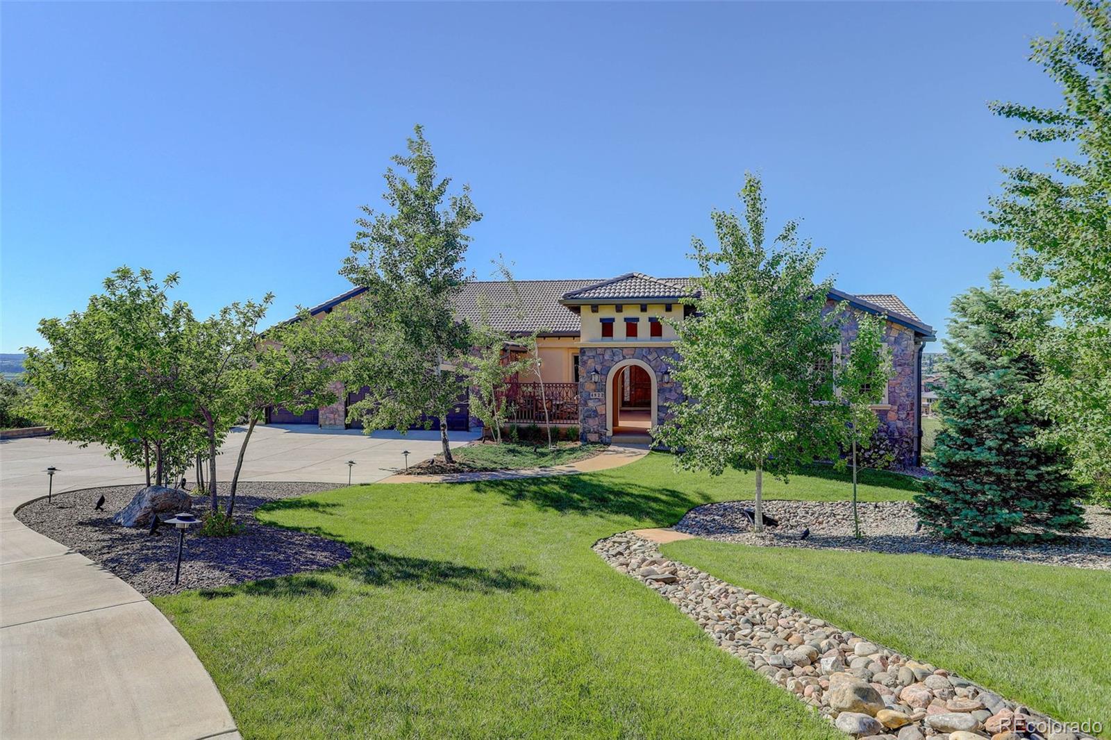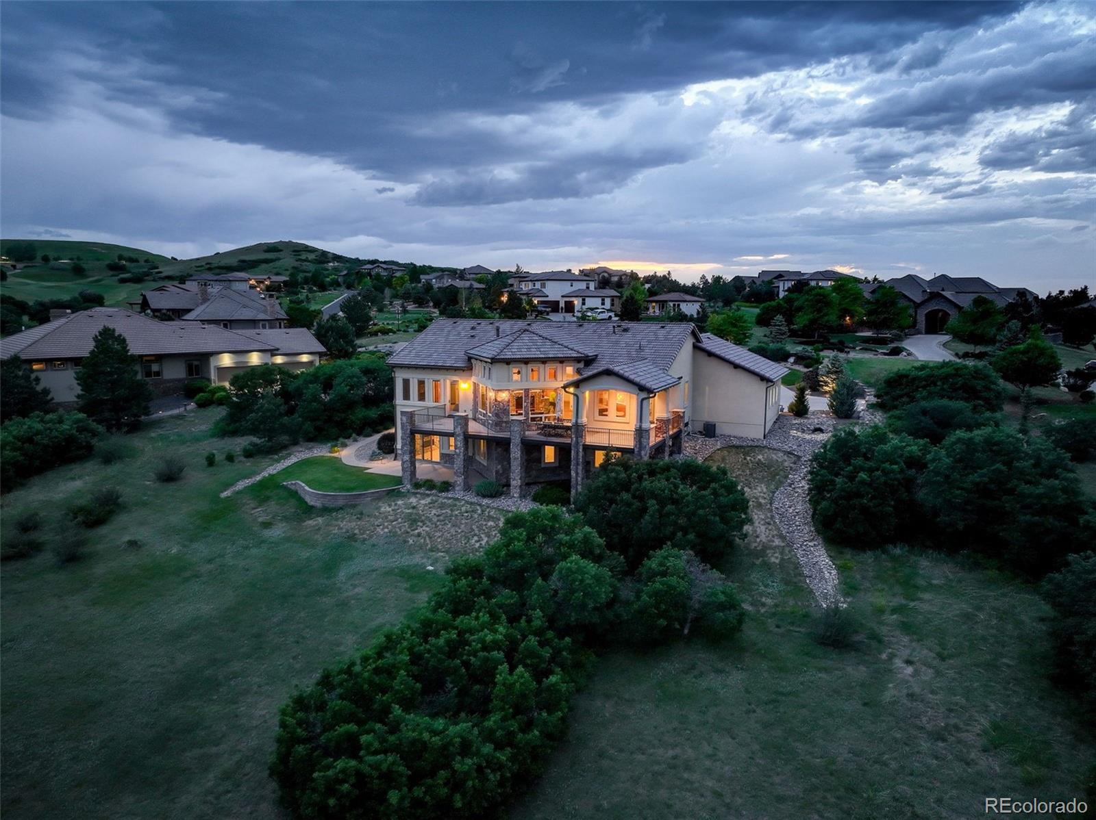 home located in the exclusive Pradera neighborhood in Parker. Perched on a 1.38 acre