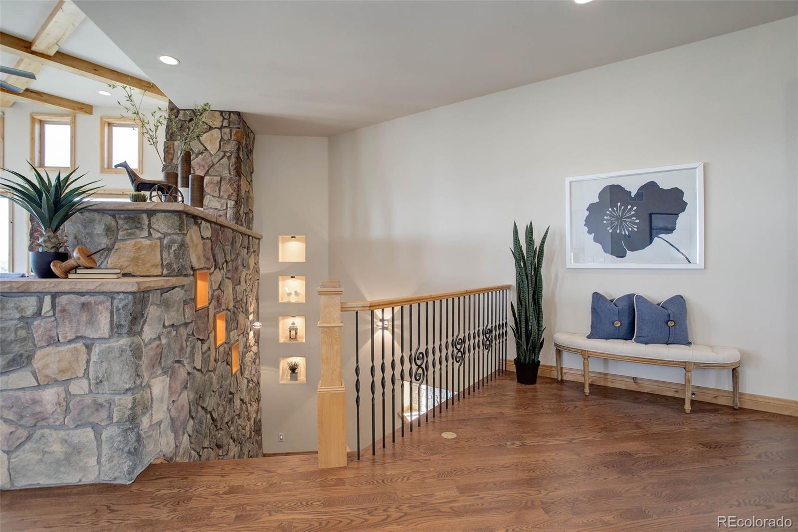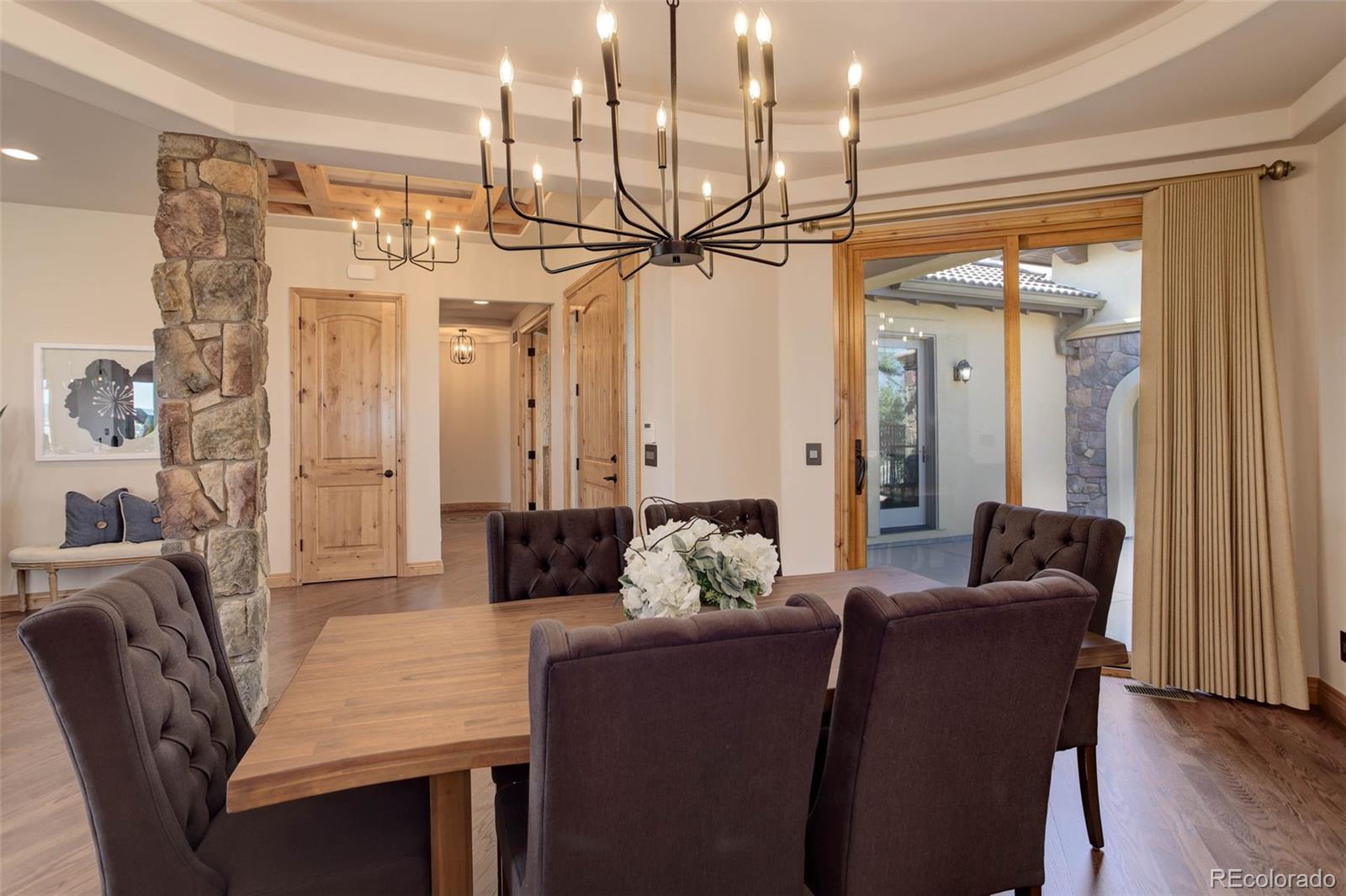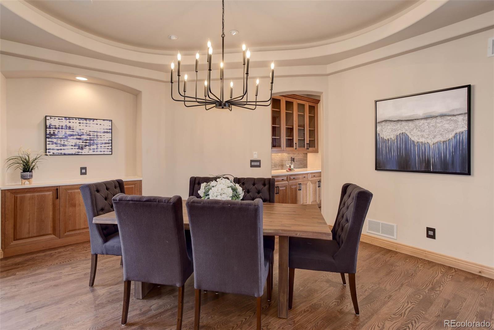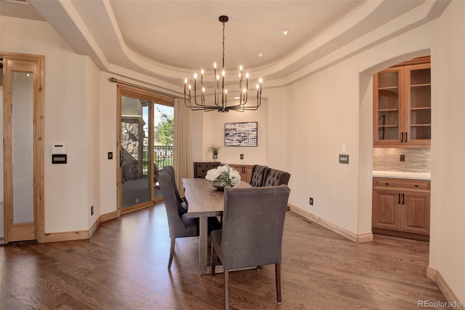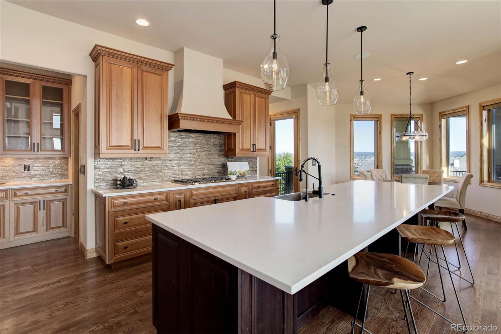 home located in the exclusive Pradera neighborhood in Parker. Perched on a 1.38 acre