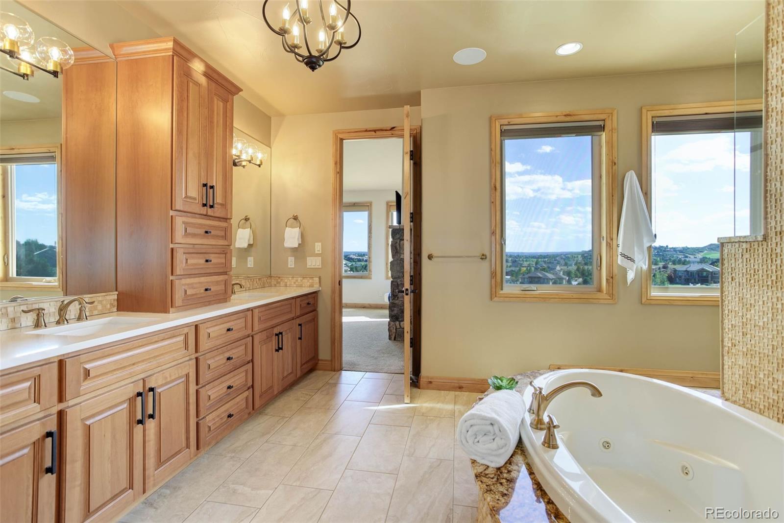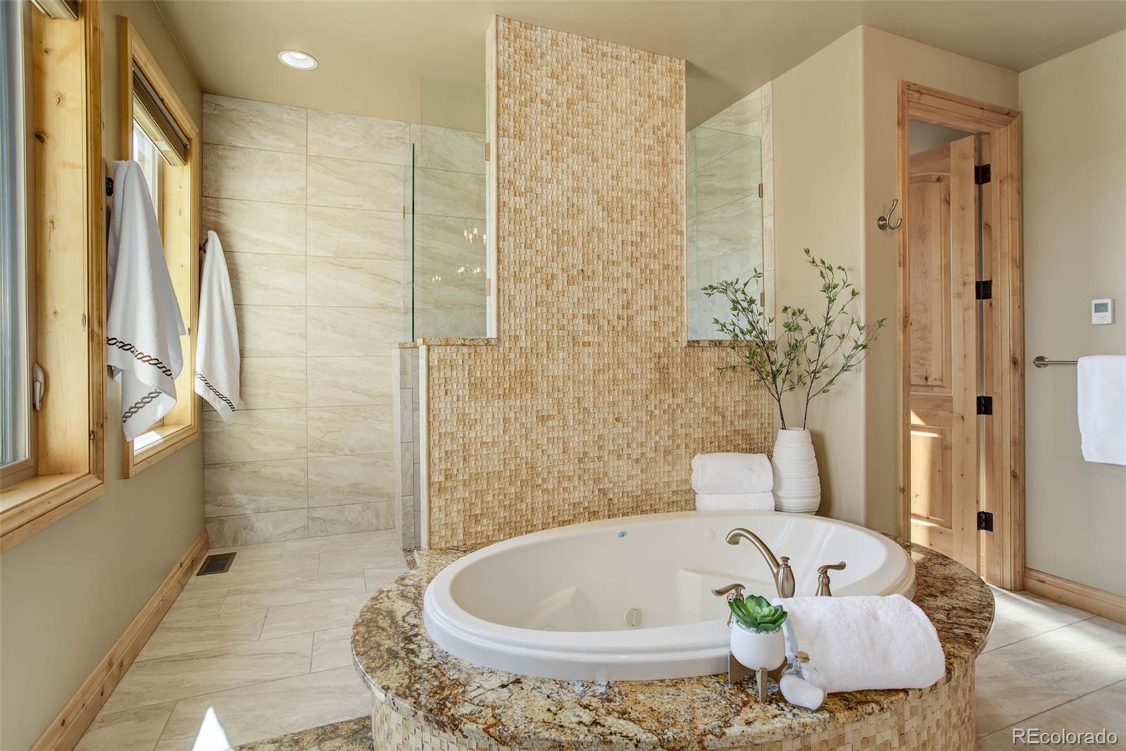 views, a resort-worthy bathroom including walk-in shower and soaking tub, this primary