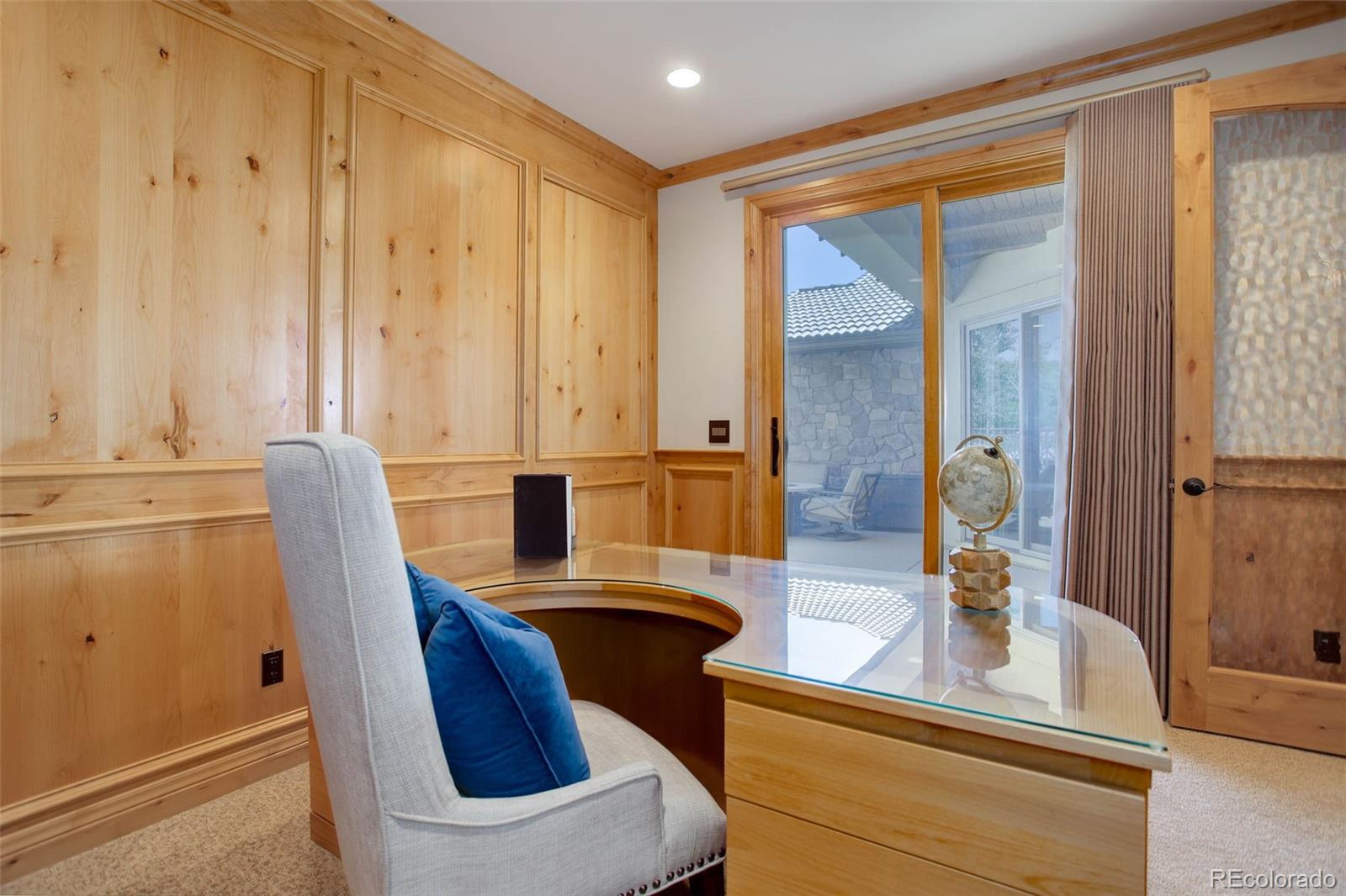 suite leaves nothing to be desired. The office features wooden built-ins, wood paneling,
