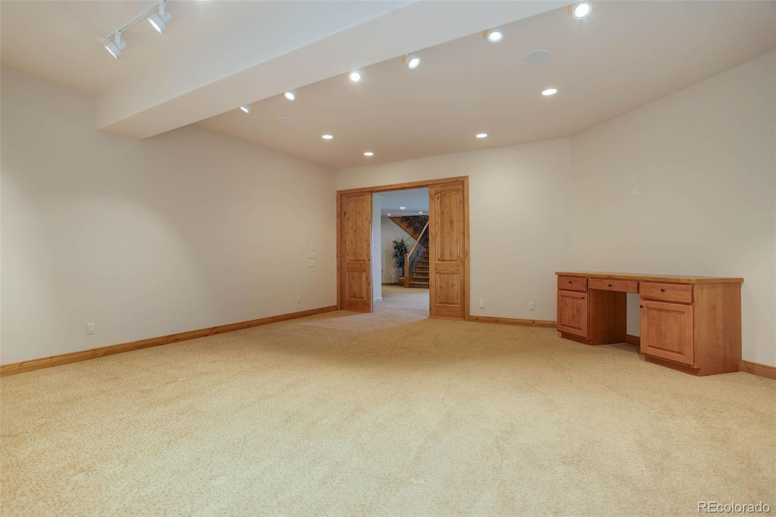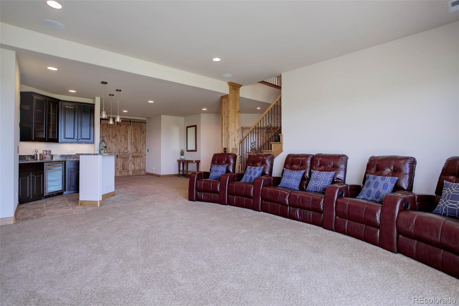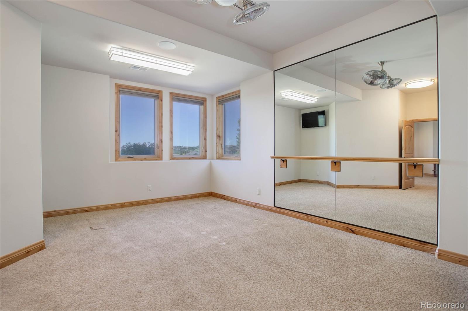 find plenty of space for entertaining. The media room, wet bar, exercise room, two