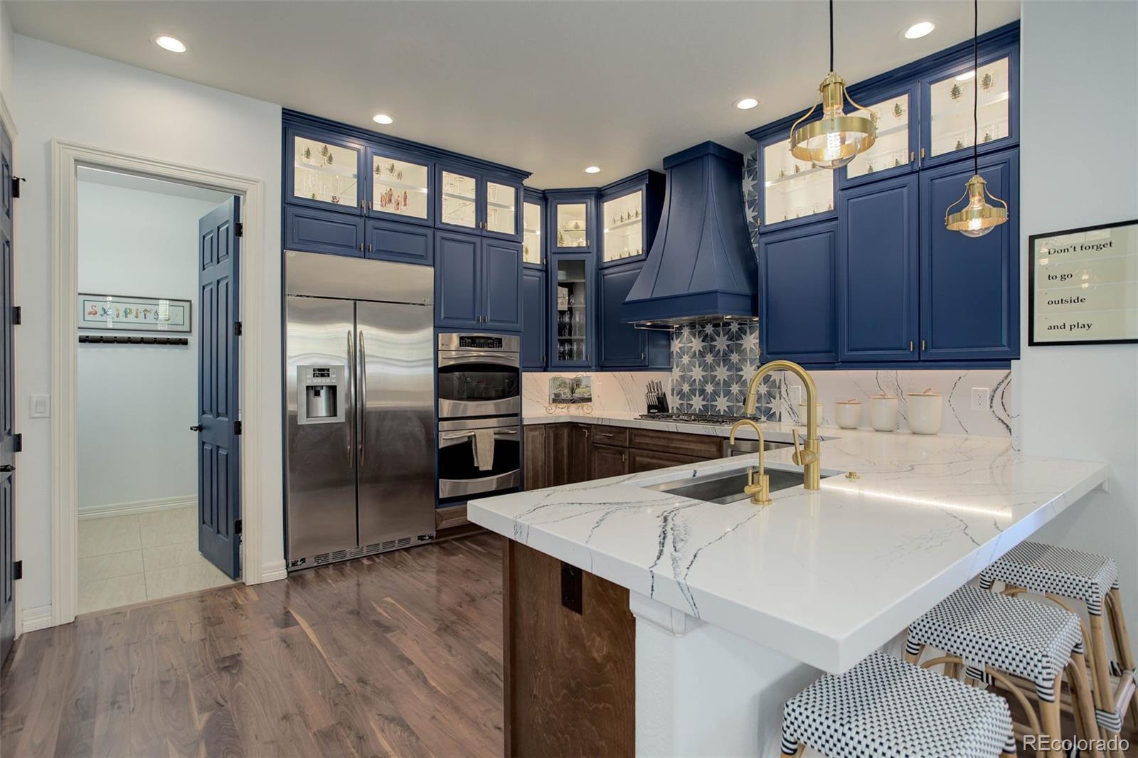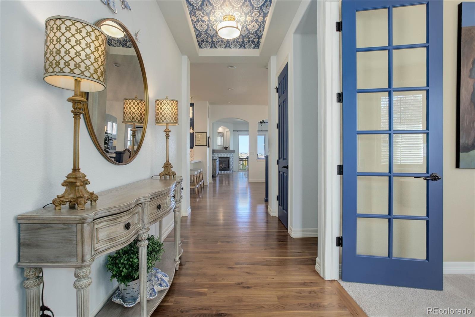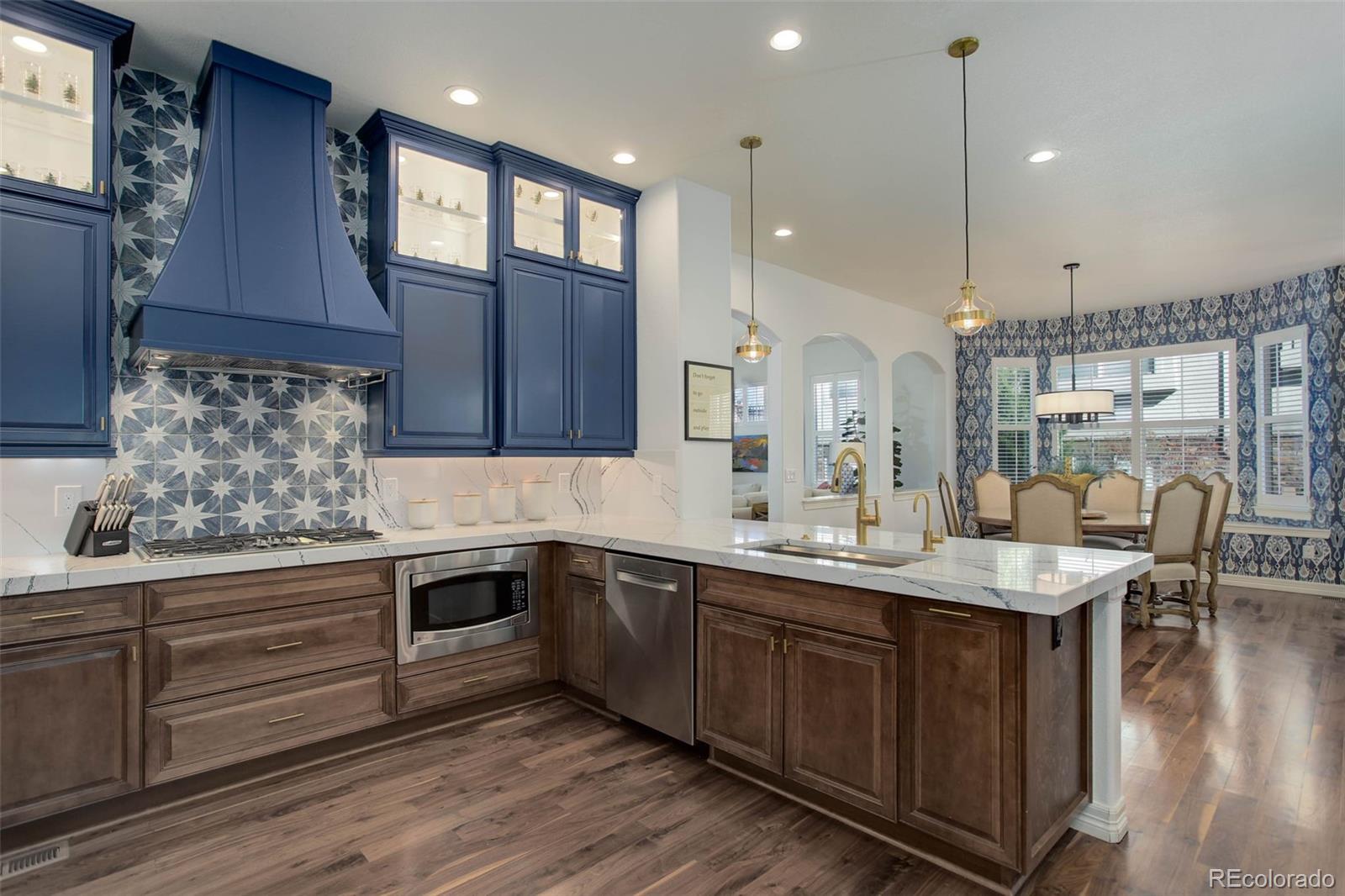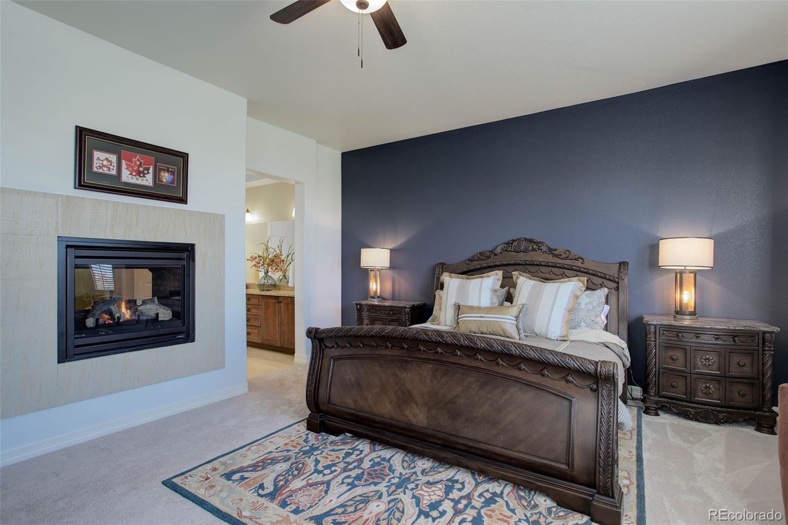 Delight in the lock-and-leave lifestyle at its finest, with this stylishly remodeled Pradera golf villa positioned on the 10th fairway! An open floor plan that features an office and primary suite on the main level gives way to a stunning back deck with some of the best golf course views in the neighborhood. Fashionable kitchen finishes include a combination of painted and stained kitchen cabinetry with glass accents, quartz countertops and brushed brass lighting and plumbing fixtures. Beautiful tile backsplashes throughout the home, hardwood floors, plantation shutters, wallpaper, and chic lighting are also highlights of this bright and open residence. The spacious master suite offers more expansive fairway views, access to the back deck, a five-piece bath with double-sided fireplace, and a large walk-in closet. The lower level walkout is just perfect for entertaining friends and family, with two more guest suites, and a large recreation room highlighted by a gorgeous wine and whiskey bar. Guests will also enjoy the peaceful and private setting of the lower level patio, perfect for enjoying warm summer evenings. Find more high-end finishes in the two-car garage, with its built-in cabinetry and epoxy-coated floors (the perfect spot for your own golf cart, by the way!) With its adjacent location to the golf and tennis clubhouse and all its activities, and with a separate neighborhood pool, park, playground and trails, this home and lifestyle simply can't be beat - this home won't last long!