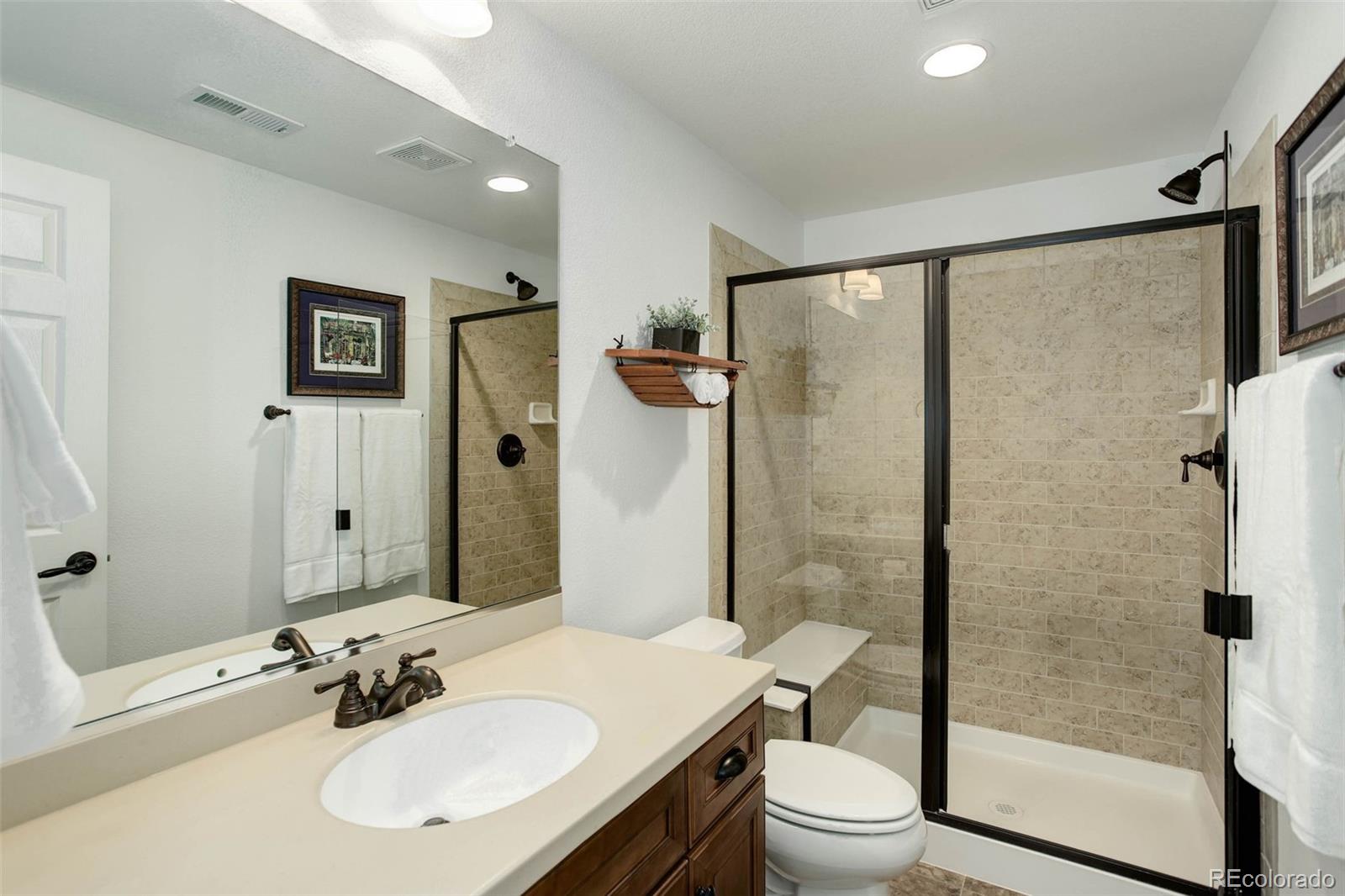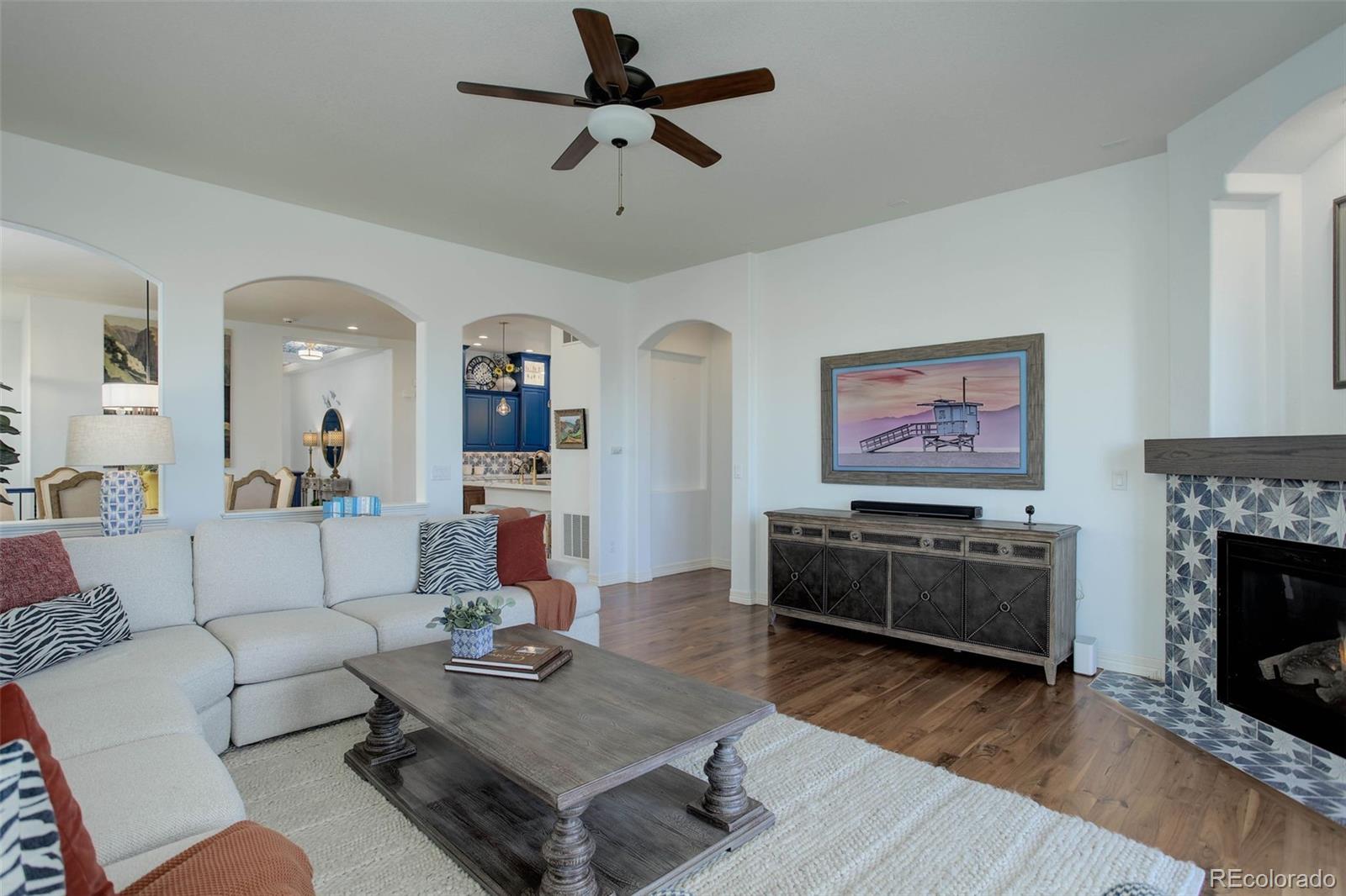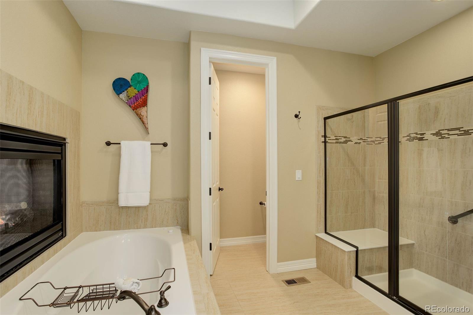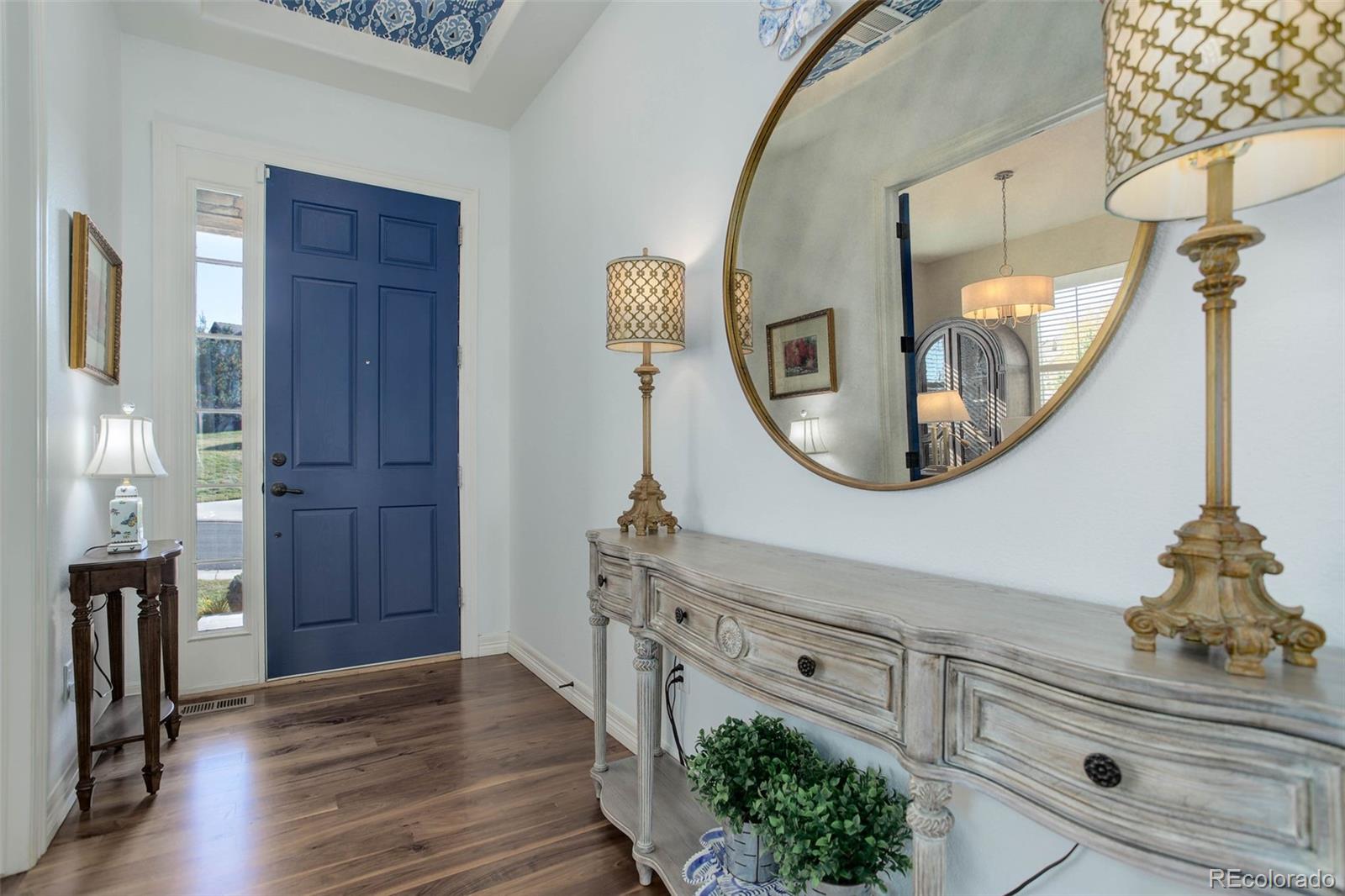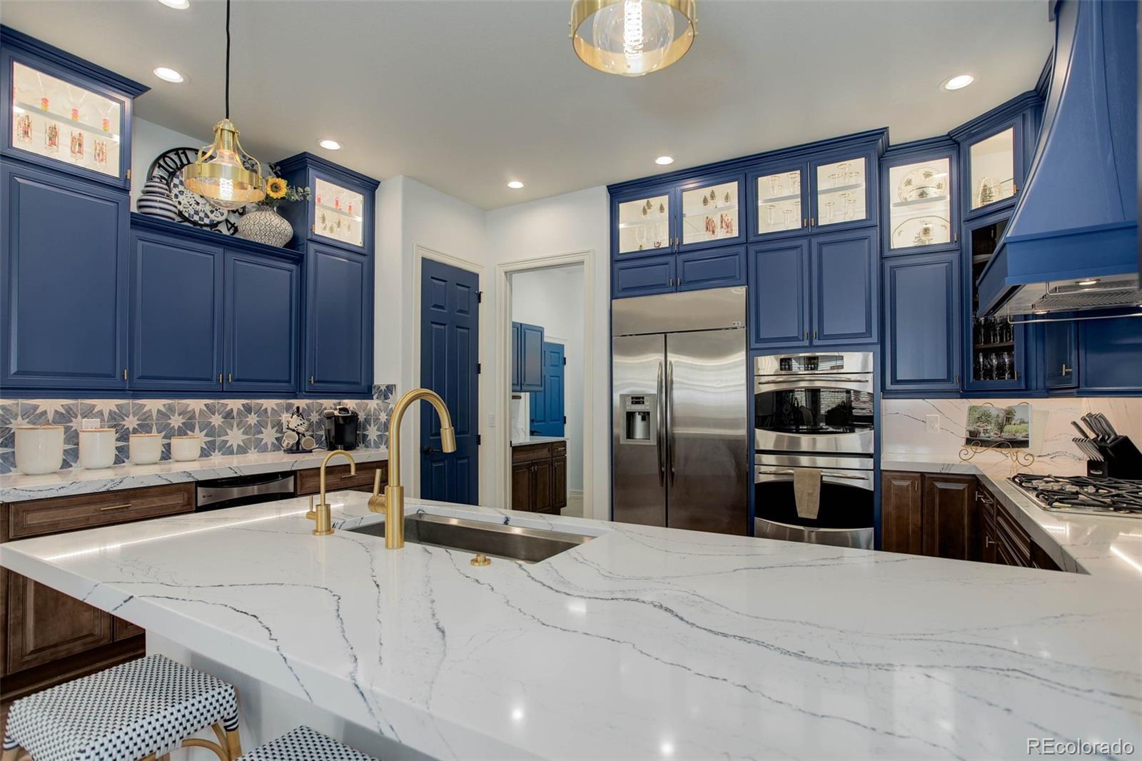 Delight in the lock-and-leave lifestyle at its finest, with this stylishly remodeled Pradera golf villa positioned on the 10th fairway! An open floor plan that features an office and primary suite on the main level gives way to a stunning back deck with some of the best golf course views in the neighborhood. Fashionable kitchen finishes include a combination of painted and stained kitchen cabinetry with glass accents, quartz countertops and brushed brass lighting and plumbing fixtures. Beautiful tile backsplashes throughout the home, hardwood floors, plantation shutters, wallpaper, and chic lighting are also highlights of this bright and open residence. The spacious master suite offers more expansive fairway views, access to the back deck, a five-piece bath with double-sided fireplace, and a large walk-in closet. The lower level walkout is just perfect for entertaining friends and family, with two more guest suites, and a large recreation room highlighted by a gorgeous wine and whiskey bar. Guests will also enjoy the peaceful and private setting of the lower level patio, perfect for enjoying warm summer evenings. Find more high-end finishes in the two-car garage, with its built-in cabinetry and epoxy-coated floors (the perfect spot for your own golf cart, by the way!) With its adjacent location to the golf and tennis clubhouse and all its activities, and with a separate neighborhood pool, park, playground and trails, this home and lifestyle simply can't be beat - this home won't last long!